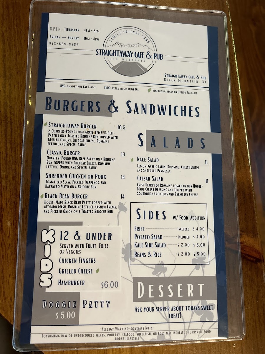 Welcome to Straightaway Cafe, a delightful gem nestled in Black Mountain, NC. This quaint cafe boasts a menu that beautifully balances hearty comfort food with healthy options, perfect for any palate. Start your culinary journey with their signature Buffalo cauliflower or savor the flavors of the heart bowl and shrimp and grits. The drink selection is equally impressive, featuring local draft beers and refreshing sangrias that perfectly complement the dishes.